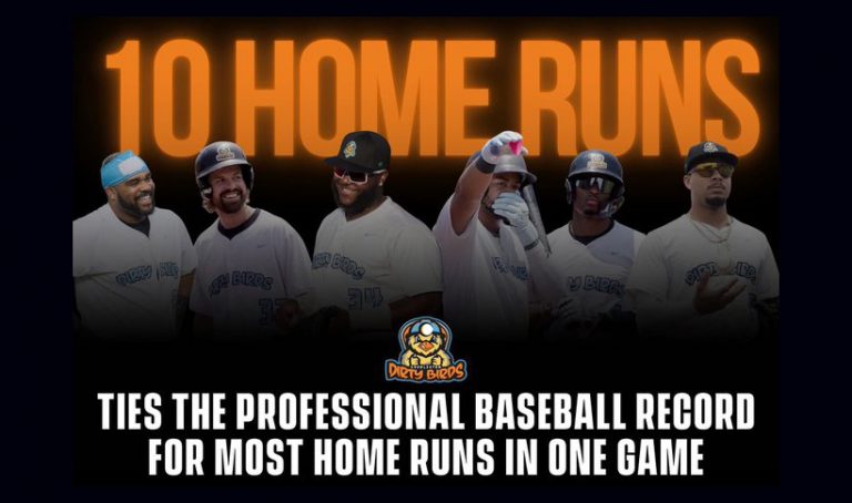On Sunday night, the Charleston Dirty Birds line-up combined to hit 10 home runs, which ties the professional record. The last time a team…