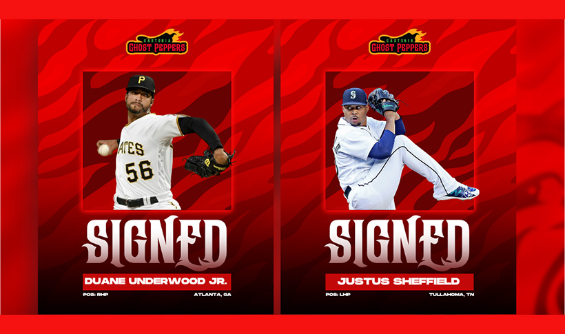 GASTONIA, N.C. – The Gastonia Ghost Peppers have signed LHP Justus Sheffield and RHP Duane Underwood Jr. for 2025, announced by general manager Brady Salisbury on Friday.