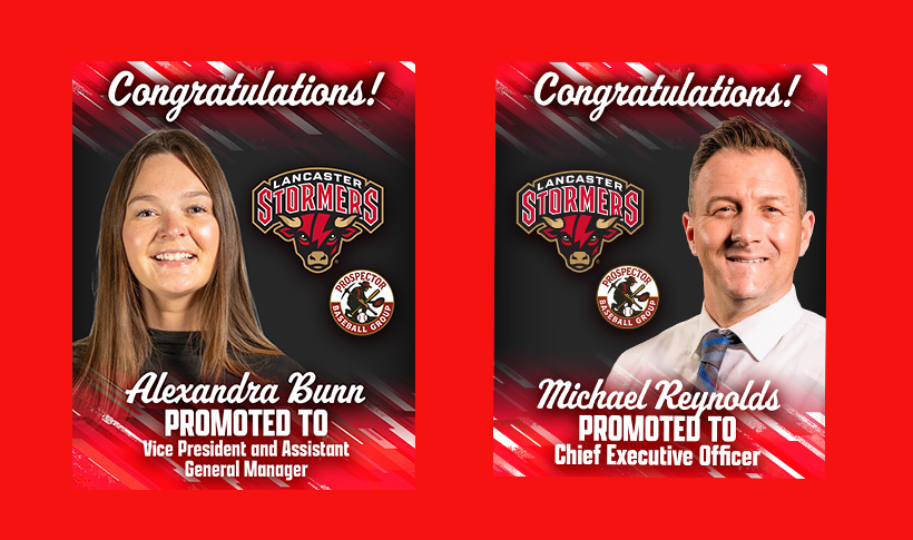Prospector Baseball Group (PBG) has announced the promotion of Michael Reynolds to Chief Executive Officer of the Lancaster Stormers and Alexandra Bunn to Vice President and Assistant General Manager of the club.