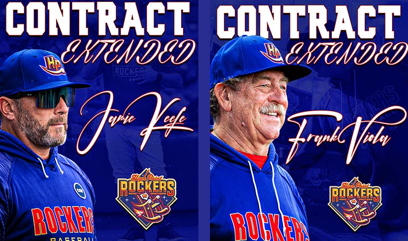 HIGH POINT, N.C. – Atlantic League Manager of the Year Jamie Keefe, along with former Cy Young Award winner and pitching coach Frank Viola, have signed contract extensions that will keep them leading the High Point Rockers through the 2028 season. Rockers team President Pete Fisch made the announcement on Wednesday.